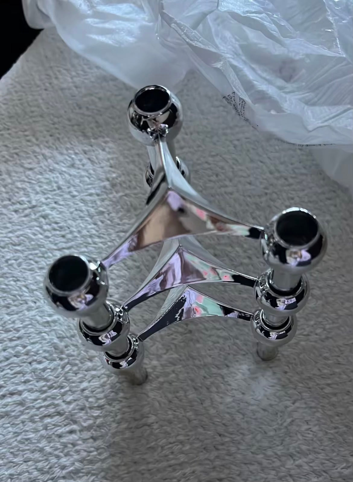 Sculptural and timeless, these modular candle holders are a statement of refined design. Crafted in polished chrome or nickel-plated metal, each piece features a geometric, interlocking structure — allowing you to stack, connect, or display them individually for endless styling possibilities.